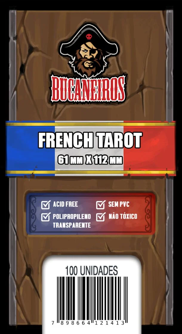 Sleeves Bucaneiros, customizados no tamanho 61 x 112 mm, ideal para proteger ainda melhor seu jogo além de nosso insert.