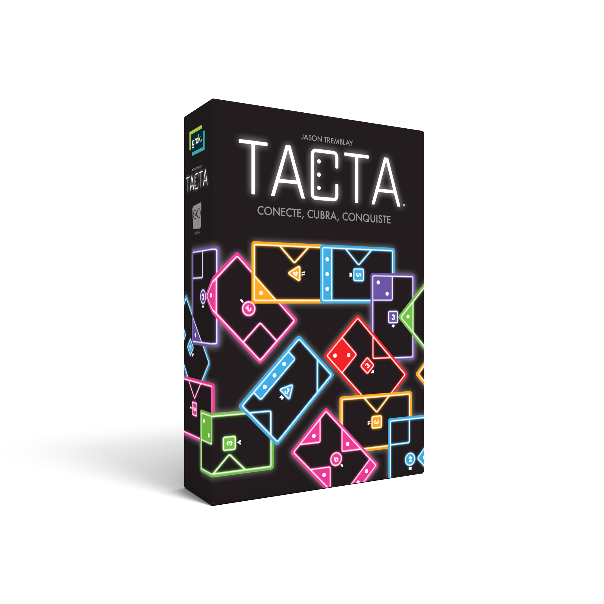 Está tudo conectado! Neste jogo de cartas sorrateiramente estratégico, os jogadores viram, giram e torcem suas cartas para alinhar e cobrir as formas dos oponentes com quadrados, triângulos e retângulos correspondentes. Com um tabuleiro em constante expansão, até 8 cores iluminam a noite de jogo com TACTA. Analise, planeje e otimize, porque em TACTA, cada carta conta.