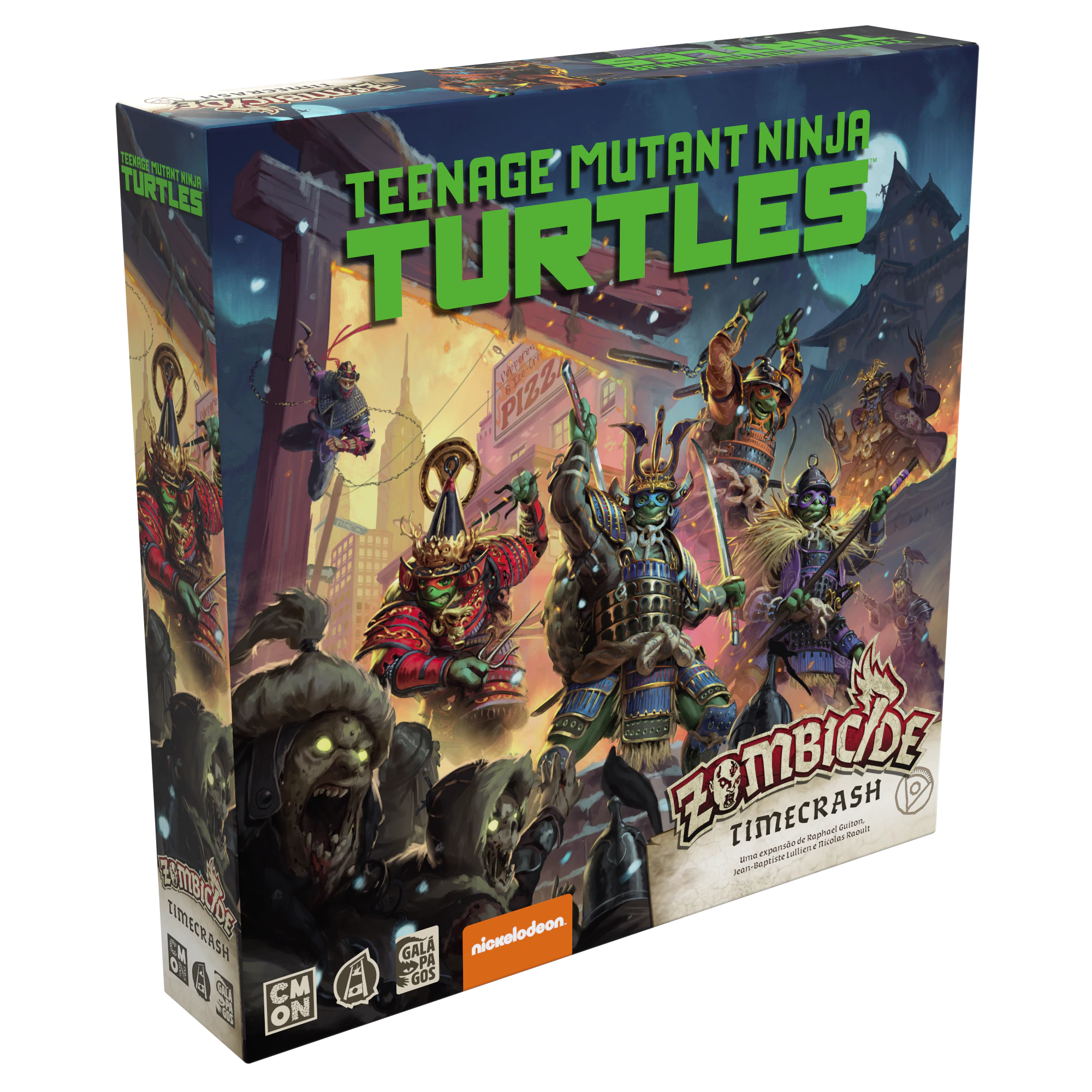Diante dessa perspectiva sombria, as Tartarugas Ninja e seus amigos atravessaram um portal para impedir o plano dele! Timecrash apresenta as Tartarugas Ninja e seus aliados, assim como novos inimigos, peças e regras. Você pode usá-los para jogar as 10 Missões inclusas ou aprimorar os jogos clássicos de Zombicide.